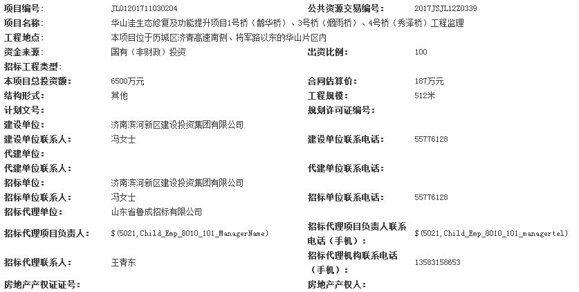 | 本次公告同时在山东省建设工程招标投标管理信息网、济南建设网、济南公共资源交易网及相关媒体上发布。 | |||||||||||||||||