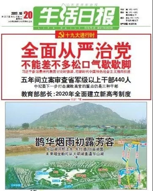 济南电视台《今晚20分》:华山湖已经正式开挖,“湖上华不注,清水出芙蓉”的山水胜景初现。