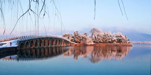 烟雨桥(3号桥)和秀泽桥(4号桥)桥型方案基本敲定。烟雨桥(3号桥)从南卧牛山一带直通华山东侧,桥长200米,桥面净宽由原来的9米增加到14米,设计为21孔连桥,将是济南所有景观桥中孔数最多的一座。目前颐和园17孔桥的长度为150米。