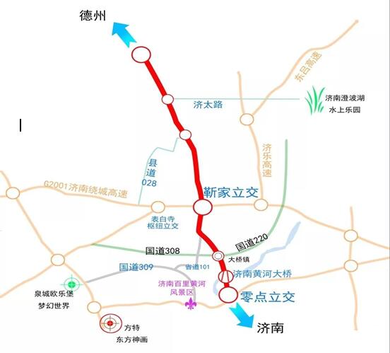 沿线居民和企业通过靳家互通立交往东直达遥墙国际机场、连接济乐和济东高速,往西连接青银直通京福、济聊高速,极大地方便了黄河北地区市民出行。