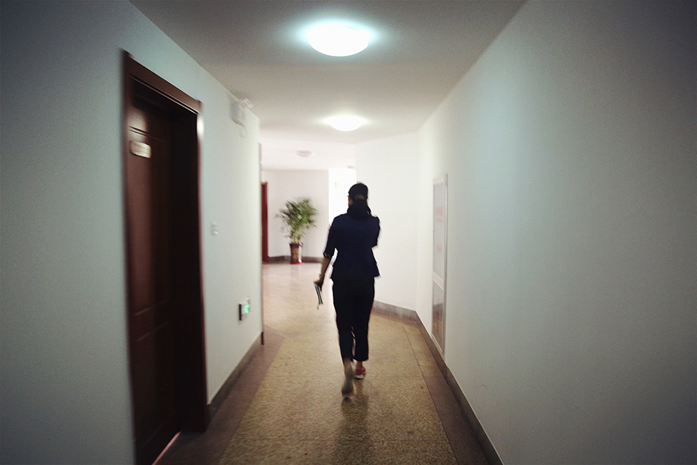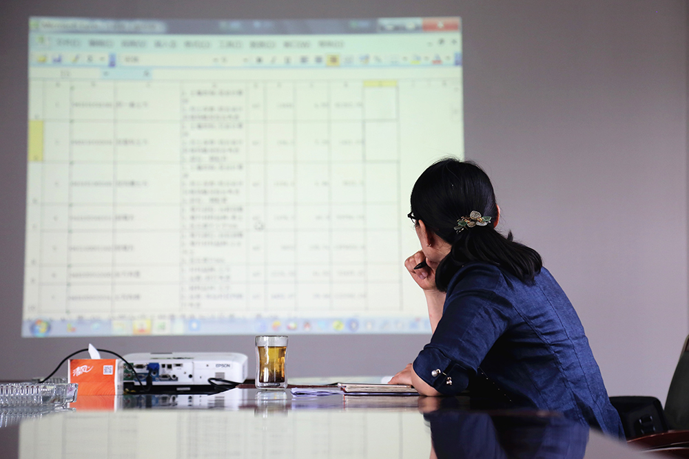 9:50,冯继军离开办公室,要去会议室与同事沟通华山湿地公园里鹊华桥土方、景观亮化相关工程的造价问题。冯继军说话快,走路也快,几乎一路小跑,来不及拿好相机,只能匆匆定格一张“失败”的照片。