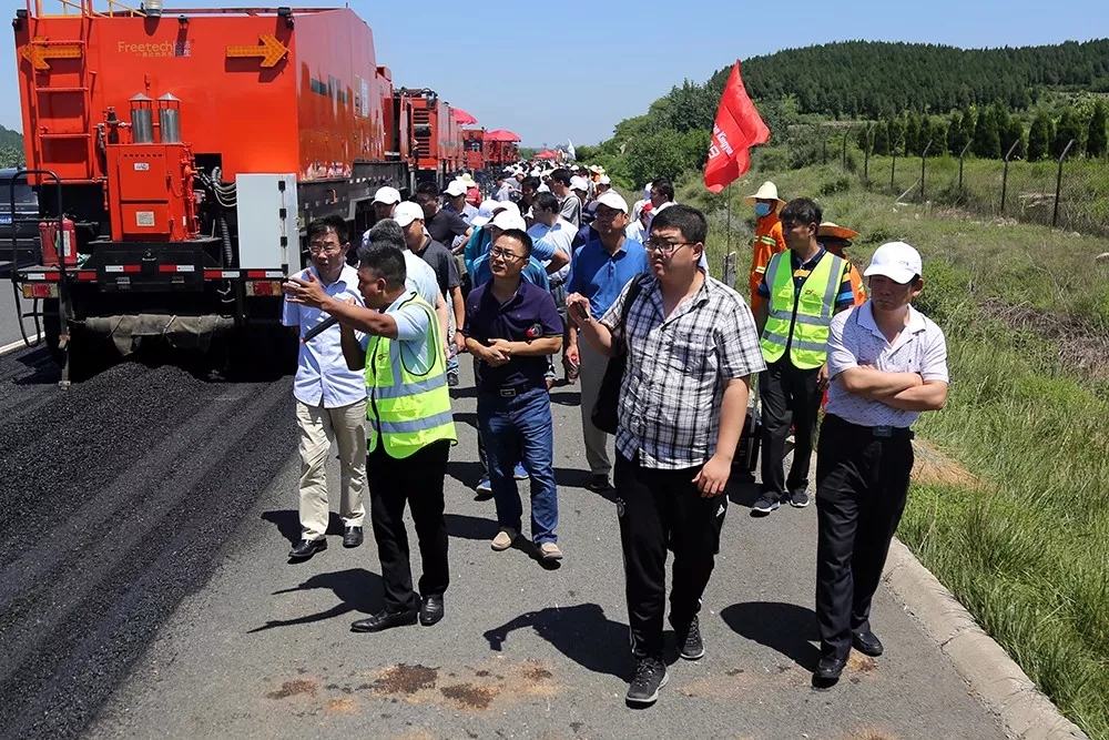 6月28日,由济南金曰公路工程有限公司组织承办的济南公路学会就地热再生技术交流及现场观摩会在平阴举行。山东公路学会副秘书长刘成海、济南市公路管理局副局长任顺祥、m88明昇副总经理安玉坤等领导同志,及省内20多家公路学会、设计院相关负责人参加活动。就施工工艺进行介绍交流后,与会人员到金曰承建的济菏高速公路维修工程WX-1标段,现场观摩了就地热再生技术的施工情况。