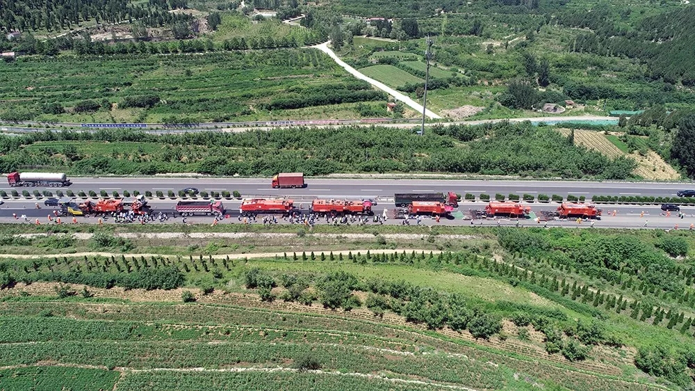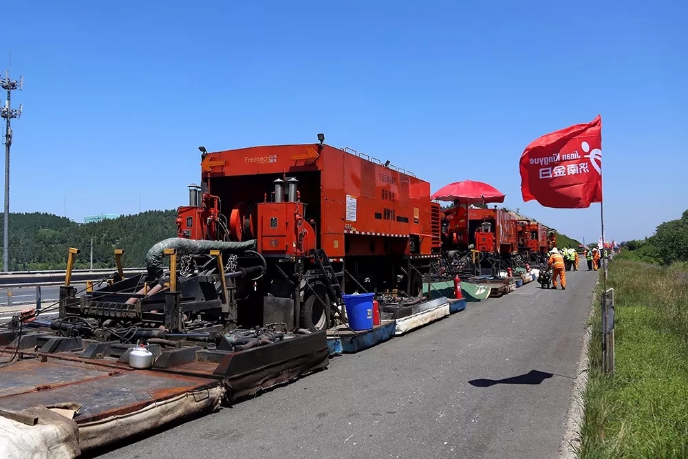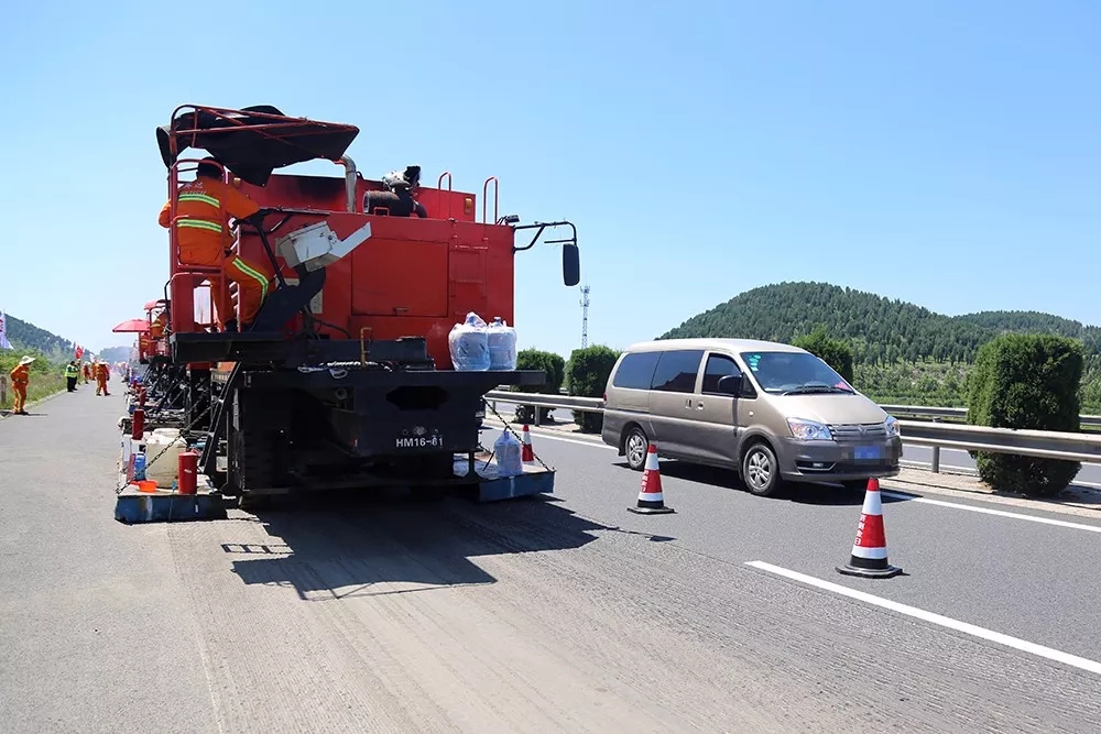 由于工艺和设备的限制,原来高速公路养护施工时必须全封闭交通。而使用就地热再生技术施工时,各设备前后相连、连续动态施工,只占用一个车道,不用封闭其他车道交通,大大提高了施工期间高速公路的通行能力。