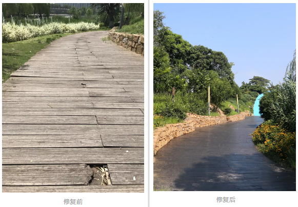木栈道路栏杆旧颜换新,有效消除安全隐患