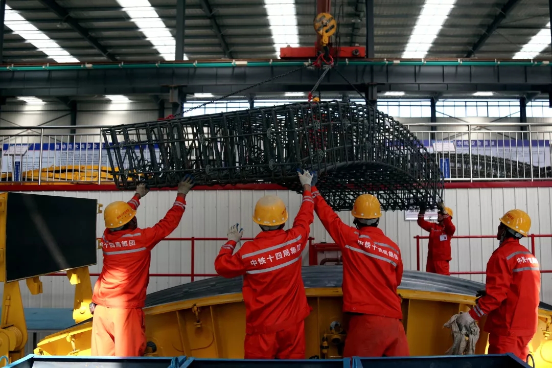 管片是隧道结构的主要装配构件,是隧道内部空间的保护屏障,承担着抵抗土层压力、地下水压力以及一些特殊荷载的作用。作为隧道的永久衬砌结构,管片密闭相接,环环相扣,犹如金钟罩,抗压、抗渗、抗震,为急速奔驰的列车提供安全空间。黄河隧道将生产15.2米的管片2537环,每环10块,共25370块,这是目前世界公轨合建最大直径的隧道盾构管片,施工难度大,技术要求高。