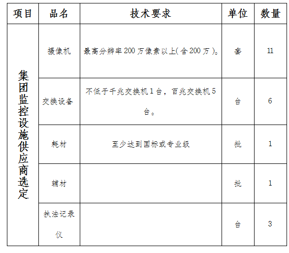1.项目名称:滨河集团增加监控设施供应商选定