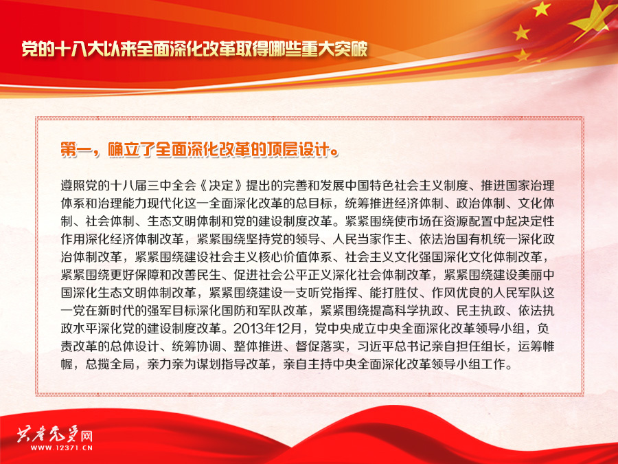 【十九大微课堂】第二十三讲:党的十八大以来全面深化改革取得哪些重大突破?