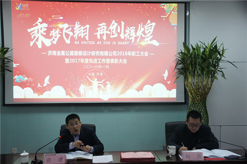 2018年1月28日,济南金衢公路勘察设计研究有限公司在第一会议室召开2018年全体职工大会,公司领导班子、中层管理干部及普通员工共五十余人参加。会议由公司副总经理兼总工杨强主持。
