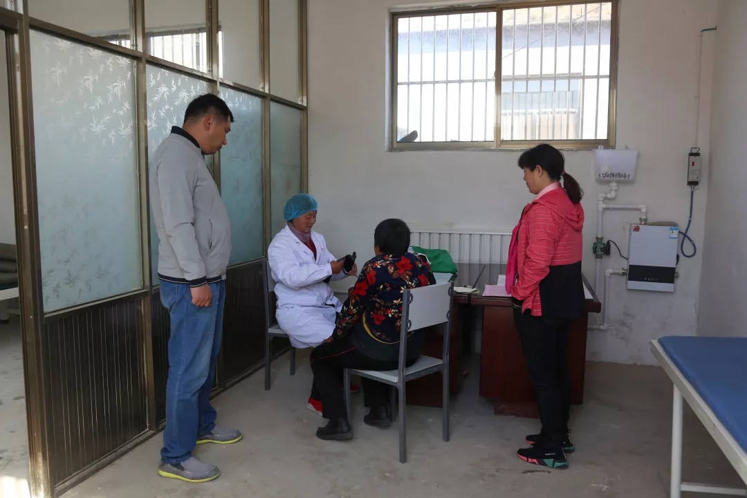 9:50王栋栋忙完了案头工作,隔壁的村卫生室(健康扶贫服务点)开了门。他和村支书任书记过去与驻村医生协调沟通医疗设备的配置等问题。
