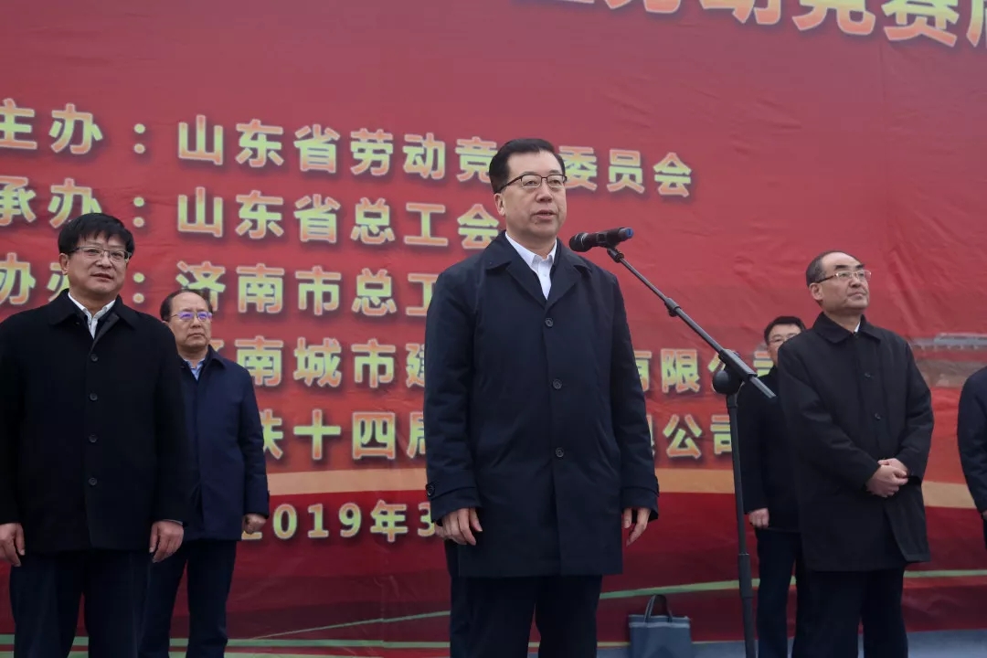 3月29日上午,山东省“当好主力军、聚力新动能、建功新时代”劳动竞赛暨新增省级示范性重点工程劳动竞赛启动仪式在济南黄河隧道工程现场隆重举行。省委常委、统战部部长,省总工会主席,省劳动竞赛委员会主任张江汀出席并宣布劳动竞赛启动,省劳动竞赛委员会副主任,省总工会党组书记、常务副主席刘贵堂,济南市委常委、市总工会主席雷天太出席活动,仪式由省劳动竞赛委员会副主任,省人力资源社会保障厅副厅长周春艳主持。
