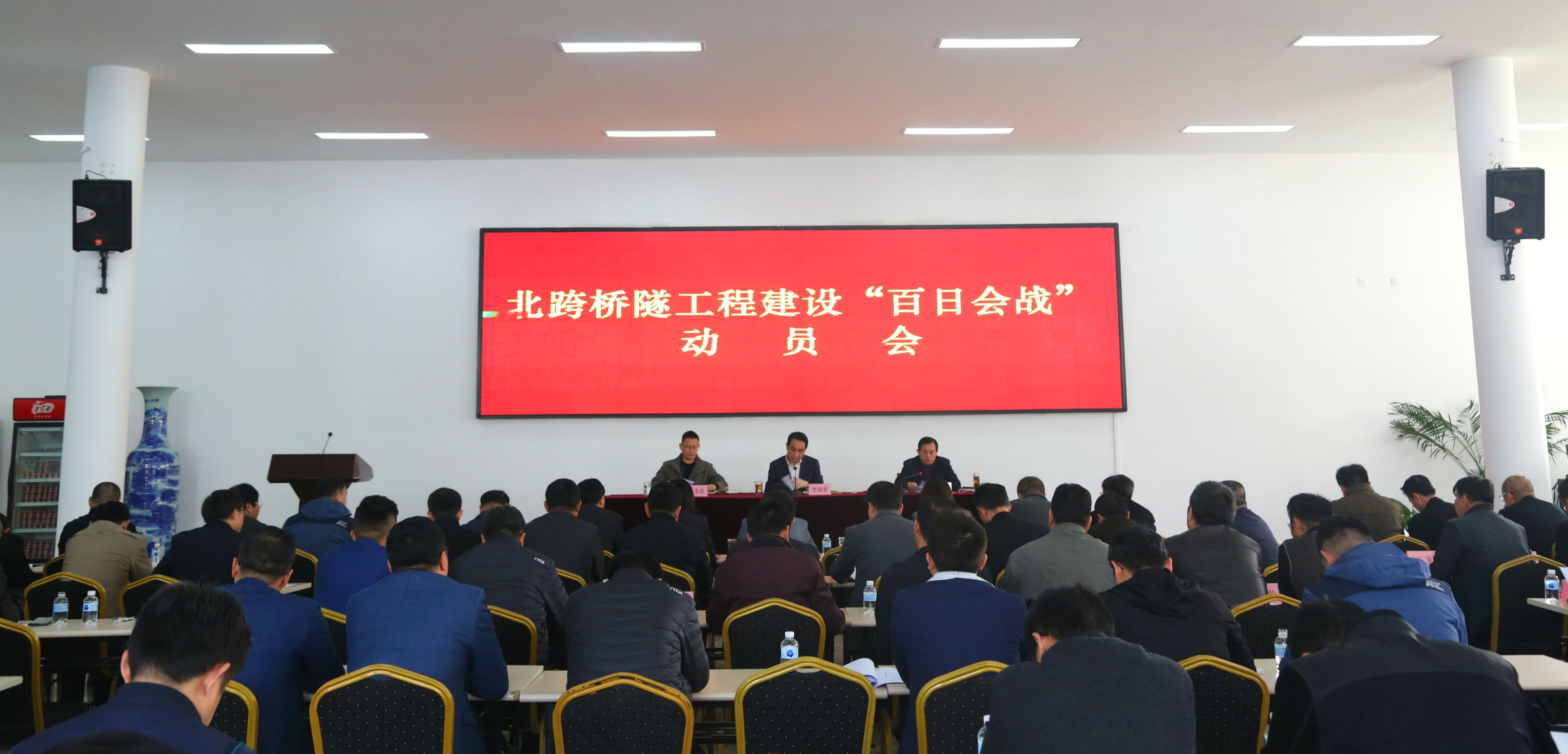李国祥董事长在讲话中指出,“三桥一隧一高速”(济泺路穿黄隧道工程、齐鲁黄河大桥工程、凤凰路黄河大桥工程、济南黄河公路大桥复线工程、济南至乐陵高速公路南延线工程)建设是济南新旧动能转换先行区建设的标志性、先导性工程,要从讲政治、讲大局的高度,充分认识北跨桥隧对于加快济南新旧动能转换先行区建设、加快济南城市建设发展的重大意义,北跨桥隧项目自2017年底陆续开工以来,各项工程都取得了积极进展。今年是桥隧项目建设的关键一年,我们必须进一步振奋精神,保持势头,再接再厉,坚决打赢北跨桥隧攻坚战。