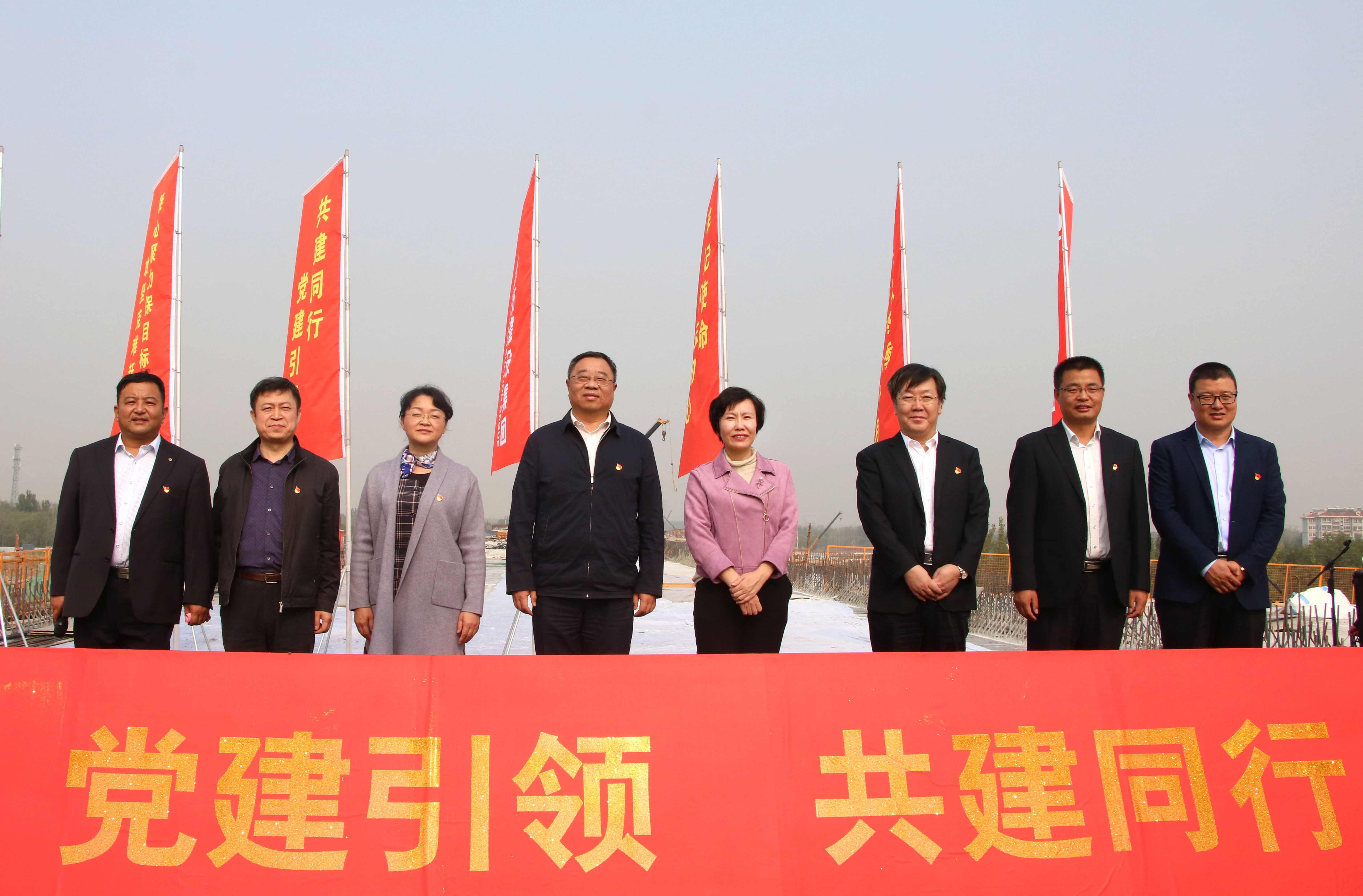 随后,与会领导为8家参建单位授旗。