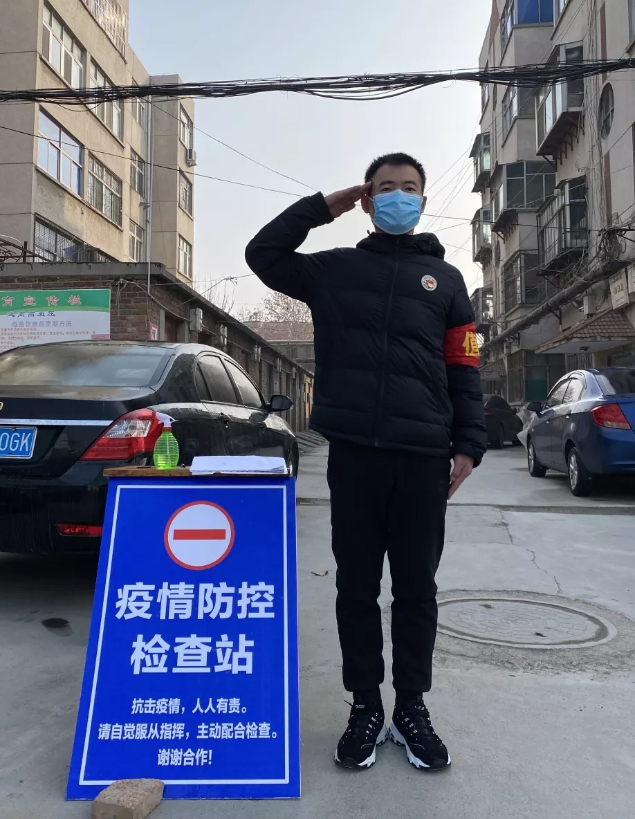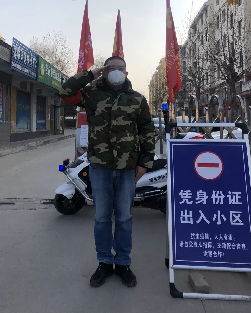 “身为曾经的军人,身为一名共产党员,我必须要站在前面,作表率,当先锋”,王锐说道。他服务的清华园小区,有1304户3300余名居民,经前期当地街道和社区工作人员走访,共排查出外地返济需留观人员24户47人,目前还在留观户数10户。这10户居民在留观期间是否有外出,对于整个济阳街道的防疫防控工作尤为重要,经过几天的熟悉王锐已经对10户居民的家庭住址烂熟于心,在往返的车流和人群中,他仔细的甄别着每一名居民的出入证和身份证,和心中的名单一一对应,确保留观人员在留观期间不出小区一步。这一站,就是九个小时,但他依然昂首挺立,曾经军人的模样又浮现出来。几天的值守,他已经将小区3300余名居民当亲人般守护,他谨记军人使命和共产党员担当,当好防控一线排头兵。