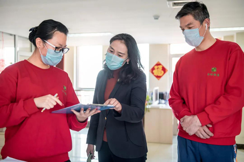 谈起这30多个日日夜夜,包托娅百感交集,“疫情的发生确实是之前我们无法预料的突发状况,当正常的秩序被打乱,在最快时间内重新建立一套完整的运转体系,真的很不容易。”说到这里,包托娅情不自禁留下了眼泪。这位平时的女汉子,在疫情期间,成为所向披靡的防控急先锋。30多个日夜、700多个小时里,面对各种突发情况,她以镇定自若的姿态、临危不惧的指挥、冲锋在前的魄力,保证了园区的井然有序,让老人们安逸如常,将疫情影响降到了最低限度。