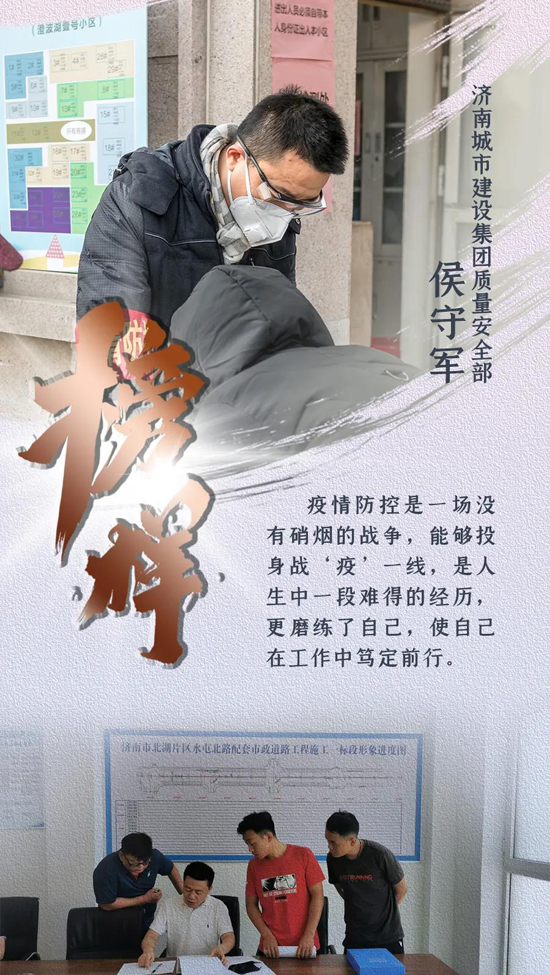 “疫情防控是一场没有硝烟的战争,能够投身战‘疫’一线,是人生中一段难得的经历,更磨练了自己,使自己在工作中笃定前行,能获得‘抗疫·出彩统战人’荣誉对我个人是鼓励与鞭策,我将视此荣誉为新起点,做一名合格的出彩济南建设人”,侯守军说道。