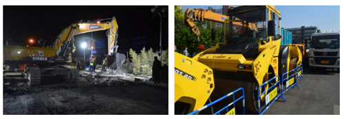 现场共有铣挖机、铣刨机、各型挖掘机、200t起重机、压路机等119台机械及备用机具。