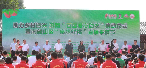 7月21日,济西农业作为济南市“菜篮子”产销联盟理事长单位,带领联盟内六大商超、三大批发市场、三家直通车及会员单位等近二十家企业作为爱心助农单位参加了济南市“百团爱心助农”启动仪式。此次活动由济南市南部山区管委会、济南日报报业集团、济南市扶贫开发领导小组办公室主办,创新采用“现场+线上”的模式,通过“报业集团全媒体+爱心社团+小程序+线上直播+线下助力+助农联盟”的方式,拓宽农产品销售渠道,助力南部山区“泉水鲜桃”销售。