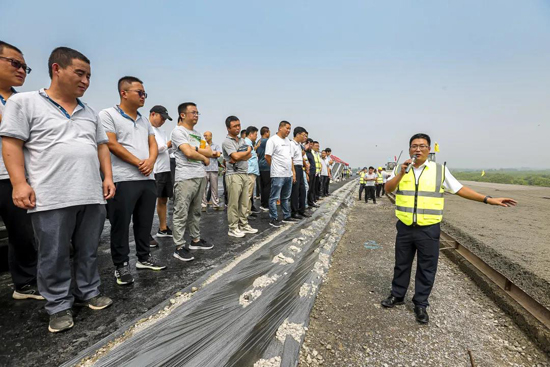 活动首先由项目部人员就3D摊铺工艺介绍、现场施工工艺讲解等问题,与参会人员进行深入地探讨和交流。随后,各单位人员来到大东环高速公路施工现场,亲身感受3D摊铺在施工中的应用。