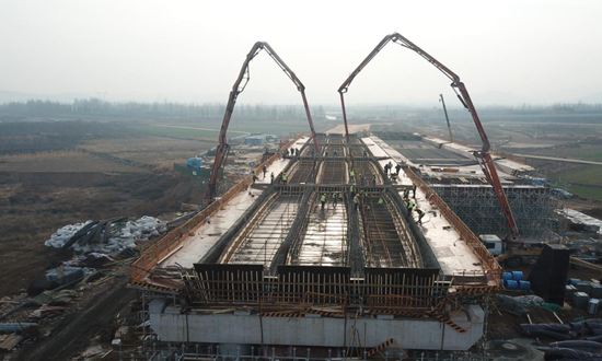 大东环二标段桩基516颗,预制箱梁550片,空心板295片,现浇梁板34片,钢箱梁约1500吨。施工中的机械设备严格做好进场调遣和定期的检查维修,并在施工全过程中加强日常保养,使设备处于良好状态,保证工程顺利进展。人员方面合理调配劳动生产力,根据各工序的需要随时抽调人机料,重点抓好关键工序,每天召开生产调度班前会,责任落实到人,每项工作专人负责,根据节点工期及各工序间的衔接安排组织施工。10月11日完成桥梁施工任务。