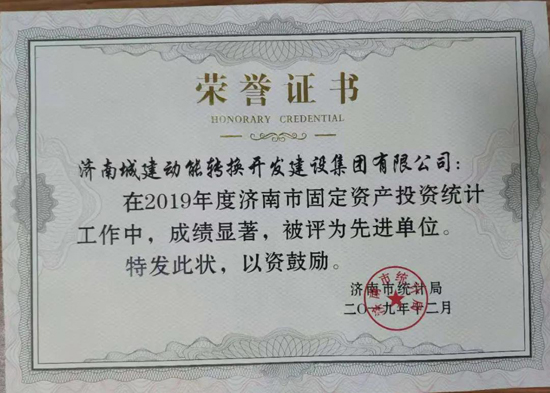 近日,2019年度济南市固定资产投资统计工作先进集体、先进个人名单公布。济南城建动能转换开发m88明昇有限公司荣获济南市统计局“2019年度济南市固定资产投资统计工作先进单位”称号,冷见奇、潘文凯、周宇三名同志被评为“固定资产投资统计工作先进个人”。