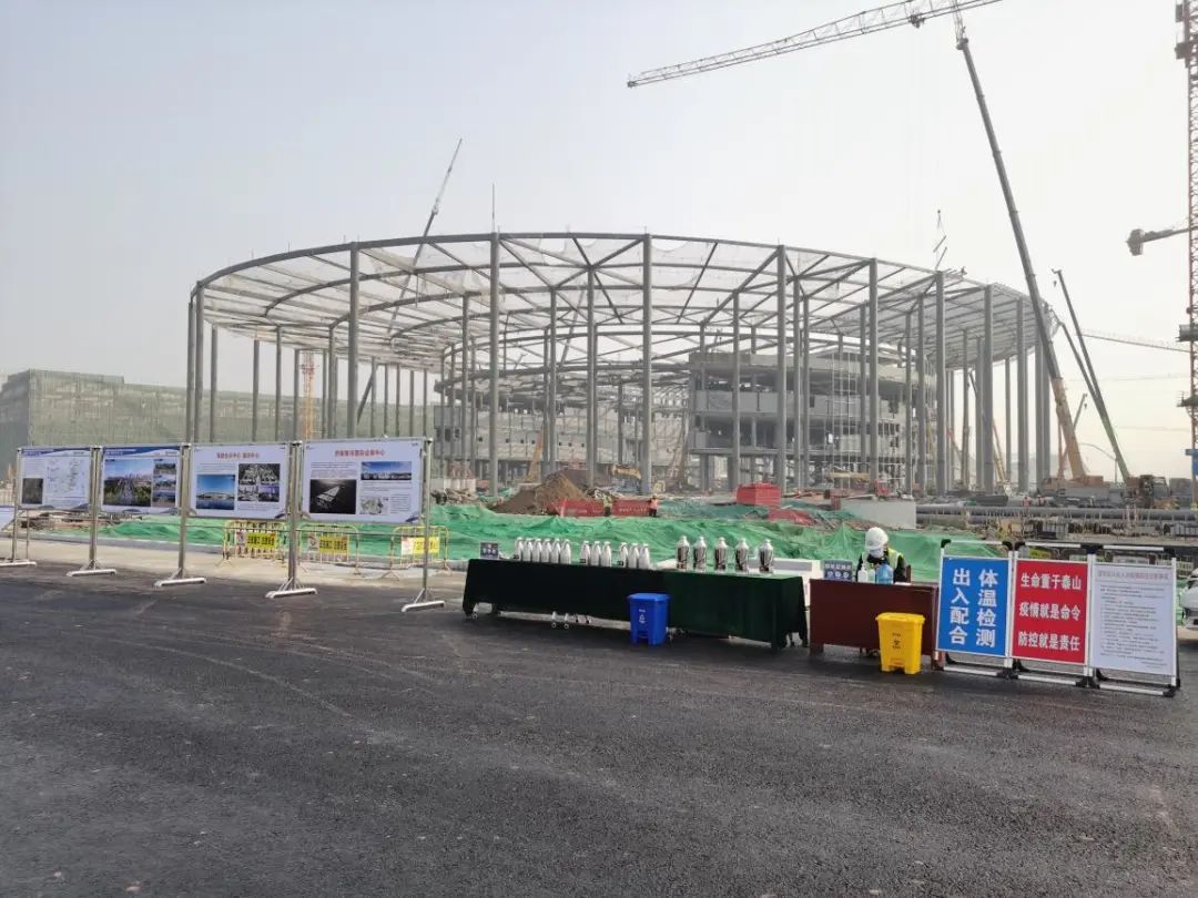 倡导绿色施工,利用太阳能改造现场照明,通过洗车台、清扫车等各项硬件设施配备以及智慧喷淋系统等软件设施的创新。时刻绷紧疫情防控弦,强化“常态化”不等于“正常化”、“低风险”不等于“无风险”的防疫意识,严格执行人员离济报备、动态跟踪,做好节假日及节后返岗人员的排查统计分析,筑牢疫情防控健康防线。