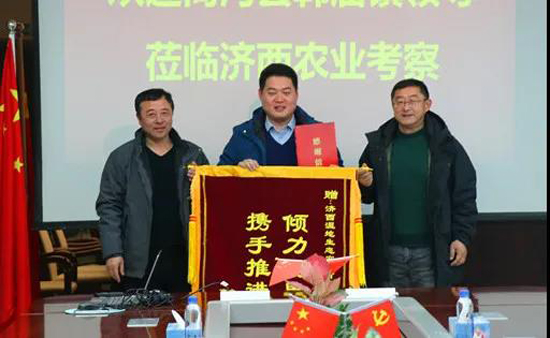 向济西湿地生态农场有限公司赠送锦旗及感谢信,并聘请济西湿地生态农场有限公司副总经理王璐璐为韩庙镇乡村振兴名誉技术顾问。