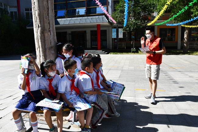 手牵手,心连心,一起成长。本次志愿者活动与全国安全月密切结合,提前印制“喜迎二十大 争做好队员”、“新型冠状病毒预防指南”、“中小学生安全教育宣传”等知识手册,在现场进行发放,向小朋友们普及相关知识。