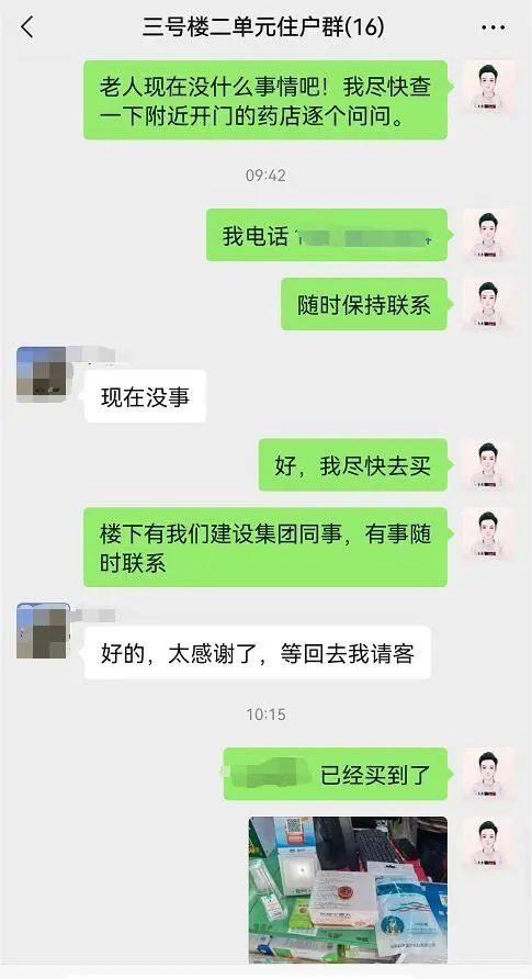 孙景鑫得知情况后,徒步对小区附近内药店进行询问,均没有这种药品,又经多方联系,开车延稼轩路向南一直到工业北路向济钢方向一路寻找,终于寻到此药品,自费购买了一个月正常使用量的“心痛宁滴丸”,并为独居老人捎带部分防疫和消暑物资。随后,他又投身于战“疫”工作中,并在住户微信群里说道:“楼下有我们m88明昇的同事,有事随时联系我们。”