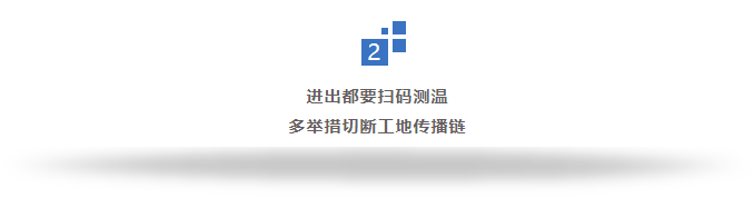 此外,项目部建立了现场劳务人员防疫花名册、“一人一档”、填写防疫承诺书,并建立劳务人员个人健康档案。而在办公区及施工现场,项目部张贴了场所码,进出现场都需要扫码、测温、登记。“现场施工人员,在场区内部必须全程佩戴口罩,每日定时组织测温,消毒。”管理人员说。