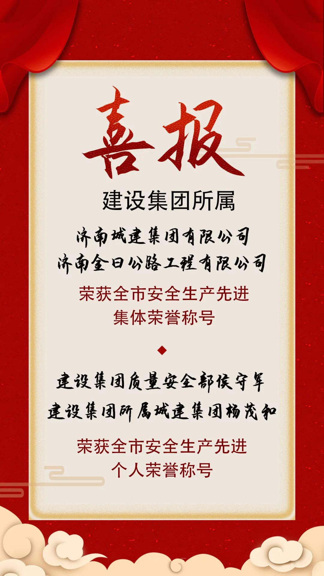 近日,济南市安全生产委员会发布《关于表扬全市安全生产先进集体和先进个人的通报》,m88明昇所属济南城建集团有限公司和济南金曰公路工程有限公司荣获全市安全生产先进集体荣誉称号,m88明昇质量安全部侯守军,m88明昇所属济南城建集团有限公司杨茂和荣获全市安全生产先进个人荣誉称号。