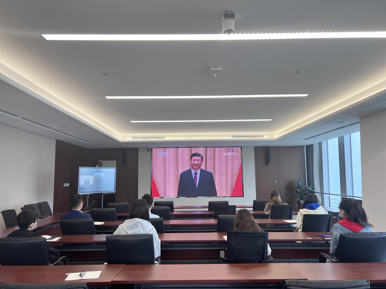 济南金衢公路勘察设计研究有限公司团总支组织全体团员观看庆祝中国共产主义青年团成立100周年大会。