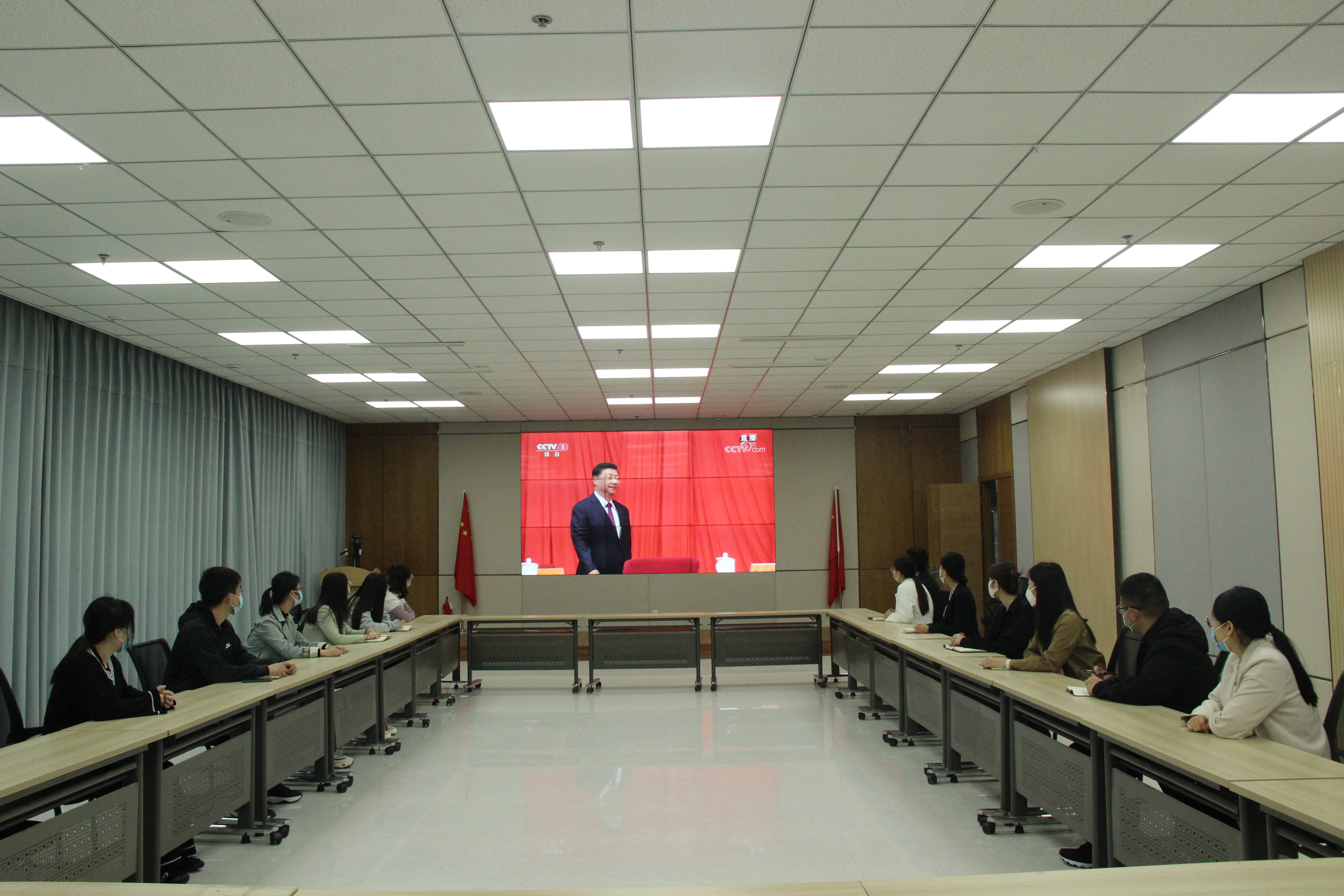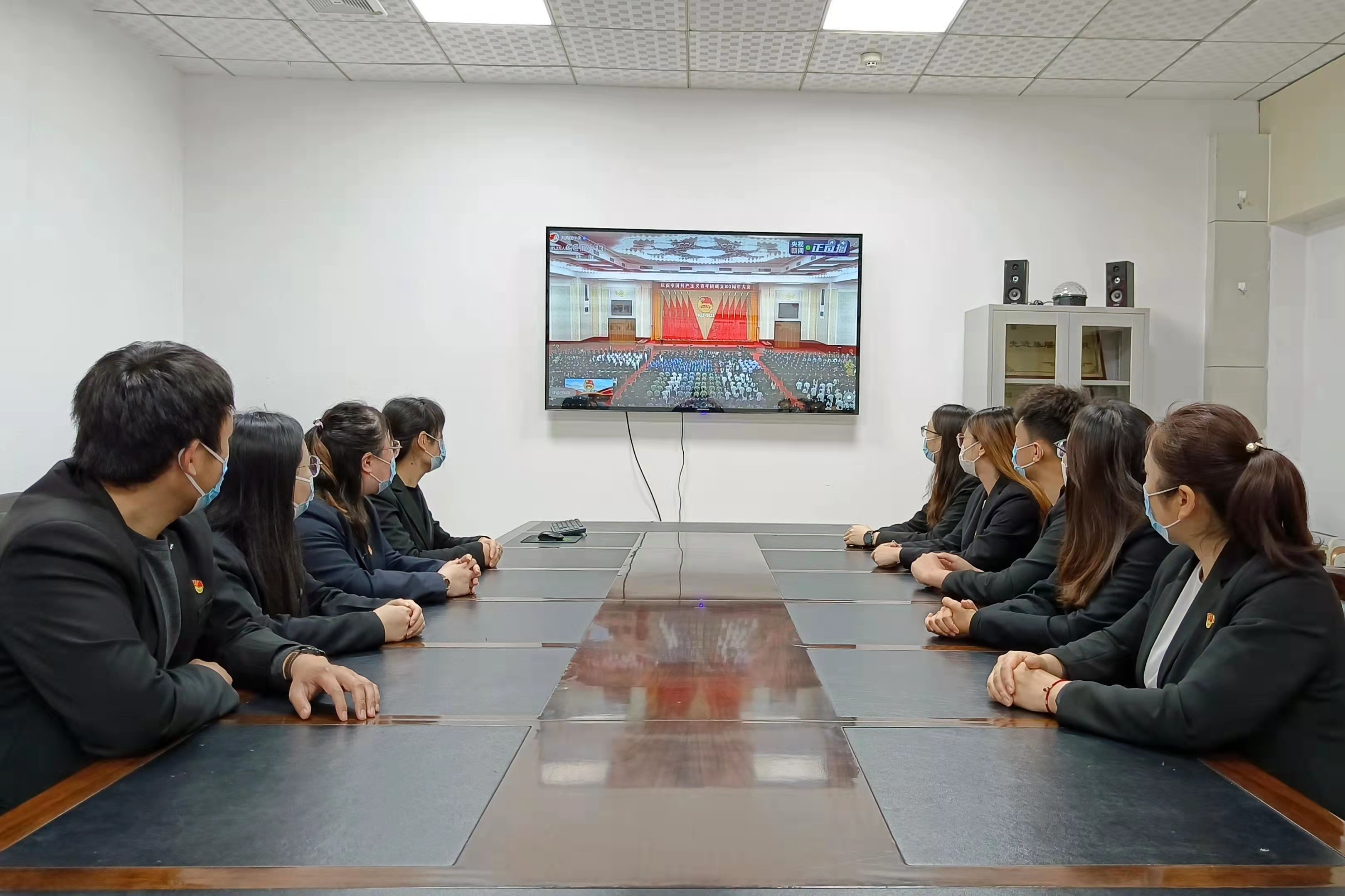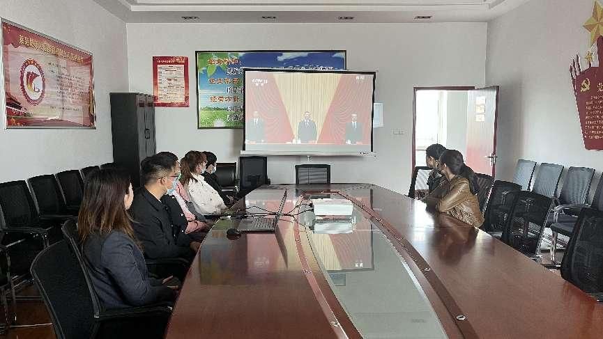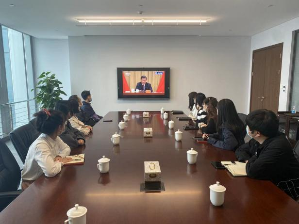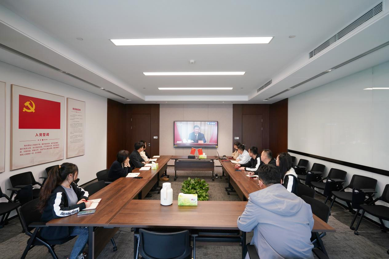济南m88明昇投资有限公司团支部组织在岗团员青年、团干部集中观看直播。