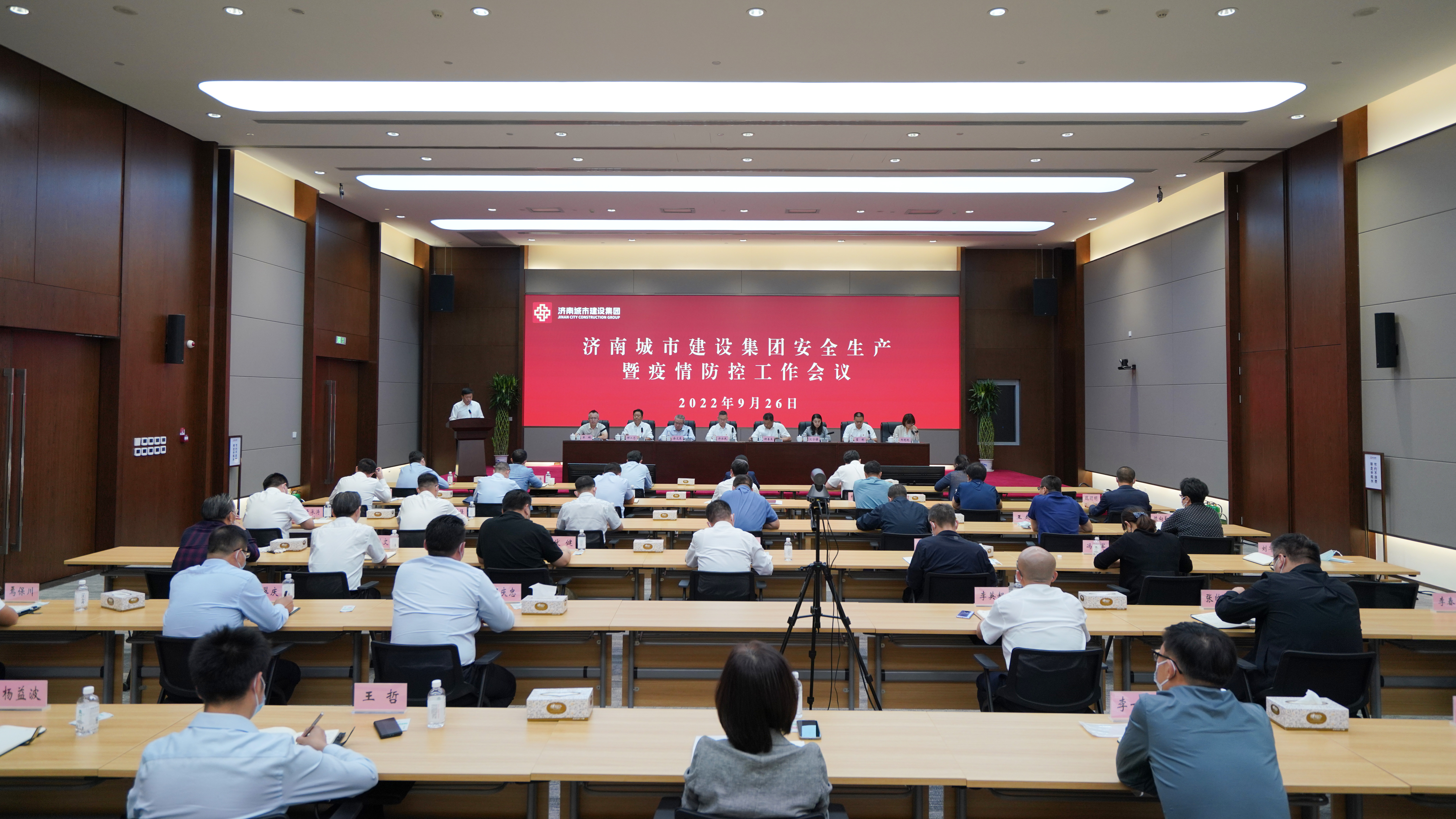 会议传达了全国安全生产电视电话会议及省市安全生产和疫情防控工作会议精神;宣读了《全市建设工地国庆假期及前后新冠肺炎疫情防控工作方案》;集团部室、子公司及参建单位代表作表态发言。