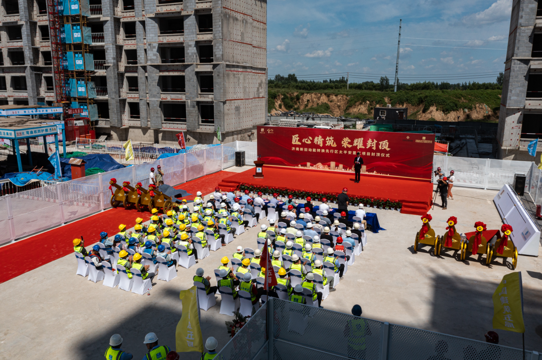 8月27日,济南新旧动能转换起步区太平安置区项目北地块1号楼和5号楼同时封顶,为该项目首批封顶楼体,标志着项目建设取得阶段性成果,将进入主体陆续封顶的新阶段。起步区管委会、m88明昇、中建五局及各参建单位的相关负责同志,一线建设者代表参加封顶仪式。
