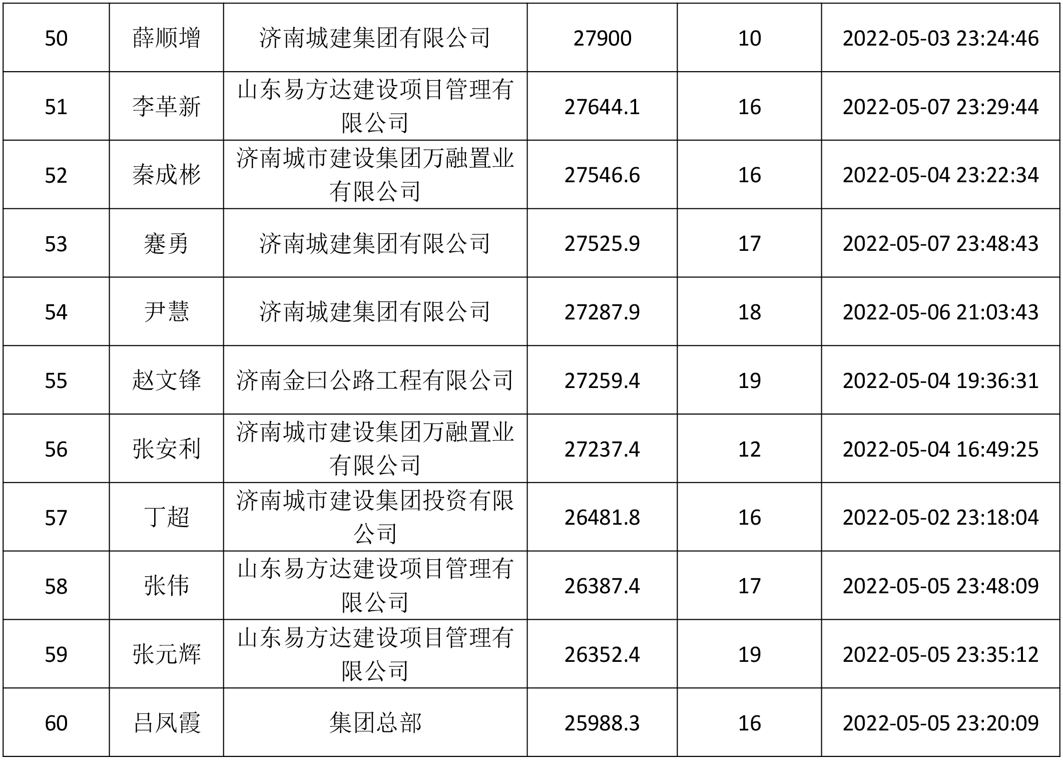 由共青团m88明昇有限公司委员会主办,共青团济南金曰公路工程有限公司委员会、济南新城文化传媒有限公司承办的“青春有梦 建设无疆”——职工线上健步走活动于5月13日正式落下帷幕。此次活动共持续19天,参与人数达1716人。