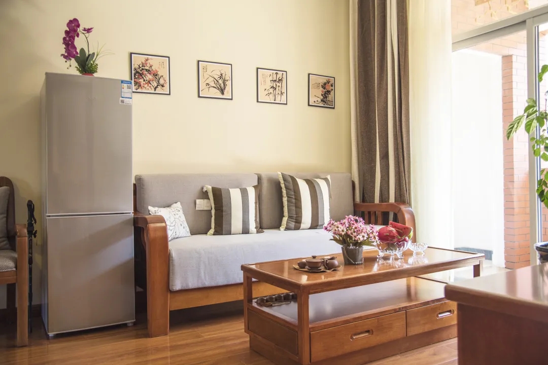 候鸟旅居区按照星级酒店服务标准,设有套房、标准间和单人间,房间内设施设备均采用适老化设计,支持短期入住,提供候鸟养老服务。