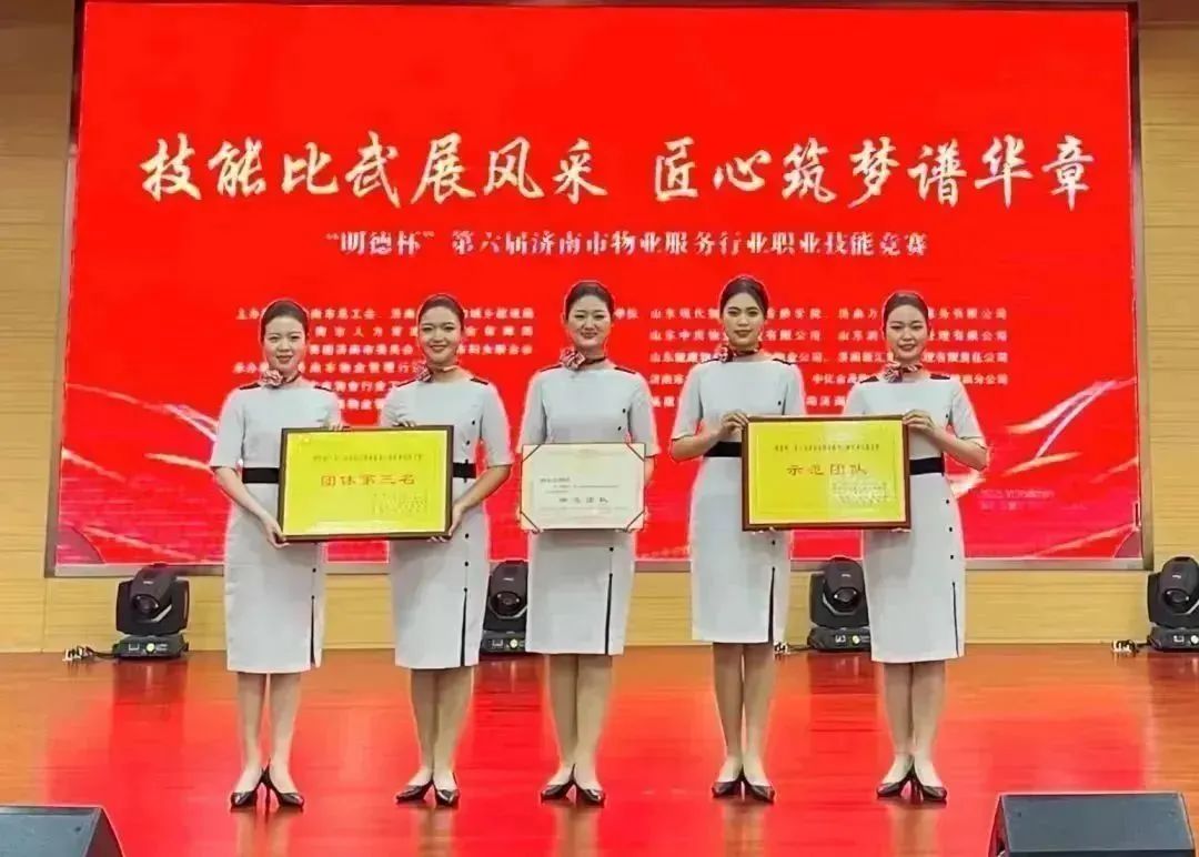 在2022年8月份举行的“明德杯”第六届济南市物业服务行业职业技能竞赛中,济南福仁城市运营服务有限公司何婷婷同志参加“物业管理员组”竞赛单元,荣获第三名好成绩,被授予“技术能手”荣誉称号。由陈瑶、宋晓菲、郑雯潇、李沁棪等客服人员组成的代表队被授予“示范团队”荣誉称号。承载城市梦想,服务美好生活,福仁以专业化人才队伍,以品质化、精细化的物业服务管理,助力城市美好向新。