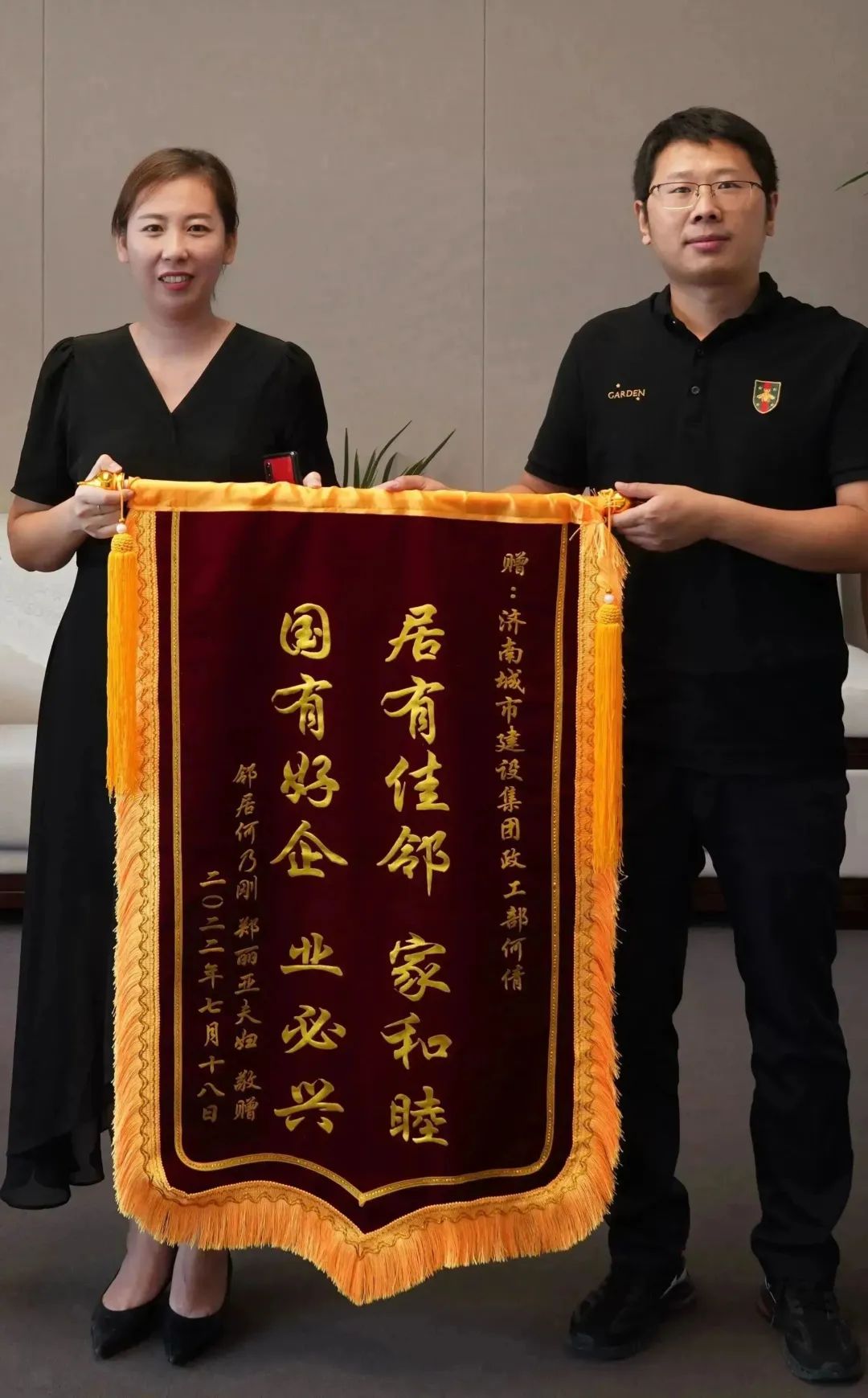 一面“居有佳邻家和睦 国有好企业必兴”的锦旗送至m88明昇,这是济南市民何先生对何倩给予其妻子的及时帮助所表示的诚挚感谢。