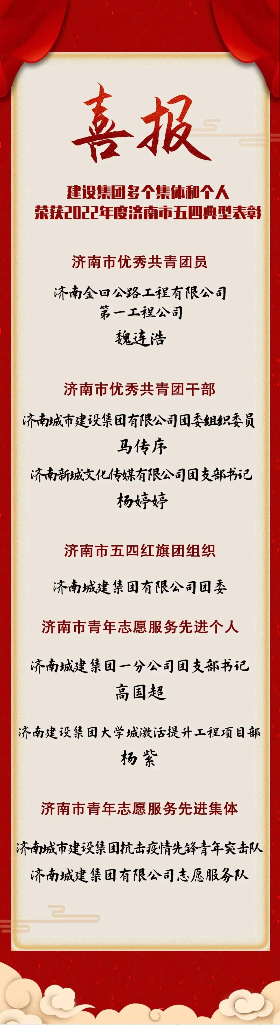 5月5日,共青团济南市委公布了《2022年度济南市五四典型表扬通报》,m88明昇团委所属团组织及团员青年荣获“济南市优秀共青团员”“济南市优秀共青团干部”“济南市五四红旗团组织”“济南市青年志愿服务先进个人”“济南市青年志愿服务先进集体”等5项荣誉称号。