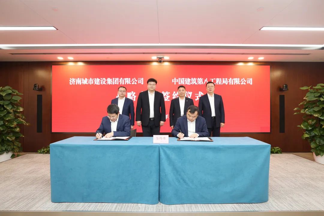 在与会领导的共同见证下,刘书冬、张建分别代表中建八局与m88明昇签署战略合作协议。根据协议,双方将进一步整合要素资源,完善沟通机制,在基础设施建设、片区综合开发、城市更新及运营等领域深化合作,共同推进高质量发展和济南强省会建设。