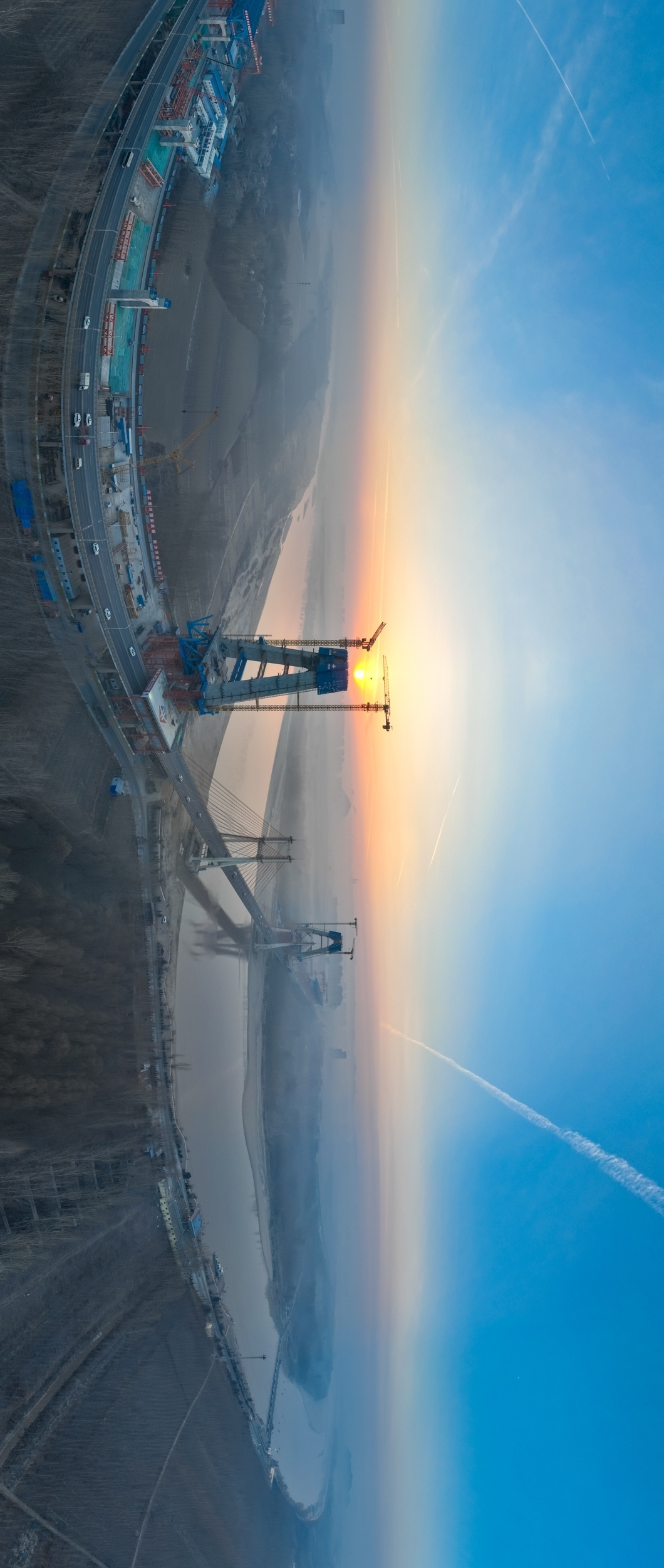 山东济南黄河公路大桥扩建工程全长7.748公里,为黄河上第一座并桥建设工程,该桥是黄河上跨径最大、钢桥总长最长的公轨分层合建桥梁。图为近日拍摄的山东济南黄河公路大桥扩建工程施工现场。