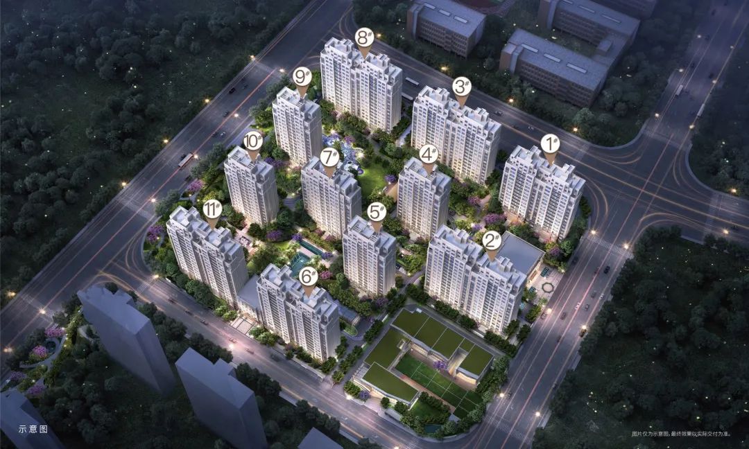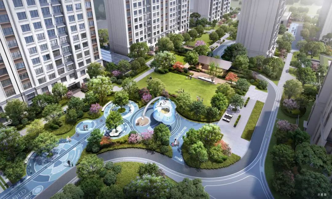 小区园林景观规划两轴一庭五园的设计,约46.9㎡户均景观面积和约1600㎡中庭景观,涵盖约100㎡浮光会客厅及草坪剧场,约500㎡全龄段儿童乐园,打造高端园林社区。