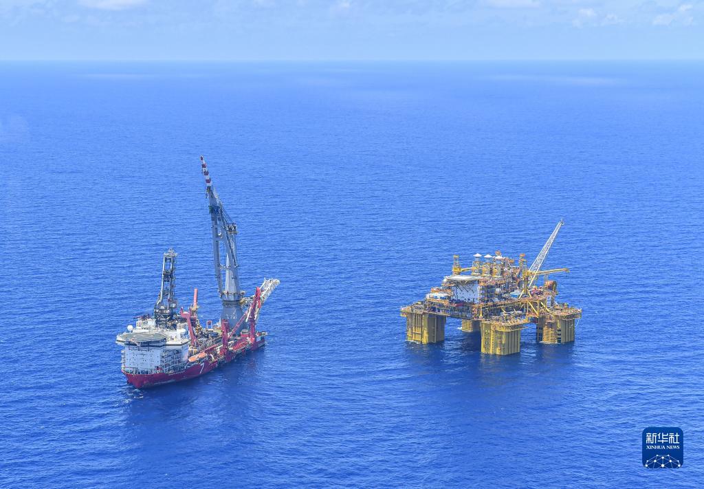 在海南陵水海域拍摄的“深海一号”大气田(2021年5月12日摄)。新华社记者 蒲晓旭 摄