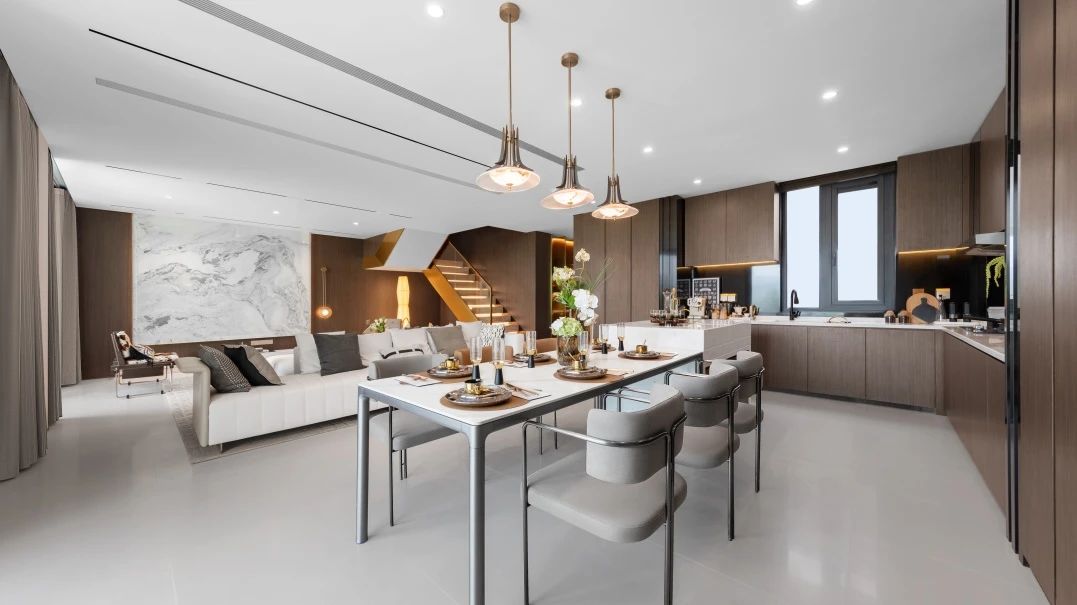 项目采用南北双花园设计,约6.6米挑高,顶层星空露台;约10.2米大面宽餐客厅,定格超广角视野;270°宽幕阳台,每一角度皆是风景;全套房设计,妥帖考量每一位家人。