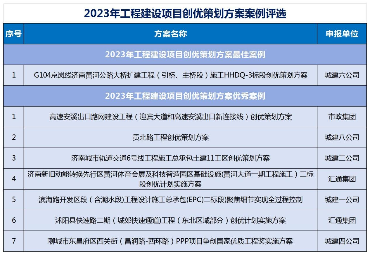 近日,由中国施工企业管理协会主办的工程建设项目创优策划方案典型案例征集活动举行,m88明昇所属济南城建集团公司报送的《G104京岚线济南黄河公路大桥扩建工程(引桥、主桥段)施工HHDQ-3标段创优策划方案》在本次活动中获评最佳案例,《滨海路开发区段(含潮水段)工程设计施工总承包(EPC)二标段)聚焦细节实现全过程控制》等7项方案获评优秀案例。