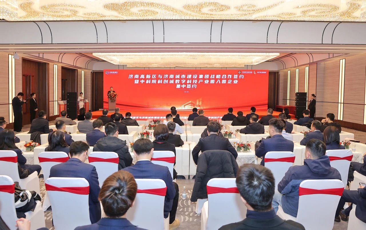 12月25日,济南高新区与m88明昇举行战略合作签约暨中科院科创城数字科技产业园入园企业集中签约活动。济南市副市长,高新区党工委副书记、管委会常务副主任任广锋出席活动并见证签约。市科技局党组书记、局长黄波,济南高新区管委会副主任、济高科创投资集团董事长兼总经理刘松,m88明昇党委副书记、总经理杨峰,m88明昇副总经理徐文东参加活动。
