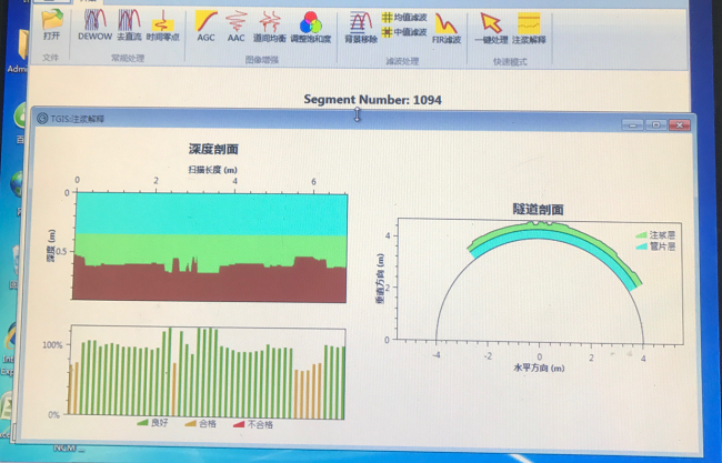 将弹性波智能检测系统安装在盾构机上,每环掘进工序完成后开启检测设备,项目技术人员通过扫描管片获得壁后注浆效果图,分析弹性波波形判断注浆密实度,根据注浆密实度对注浆工序实时做出调整。