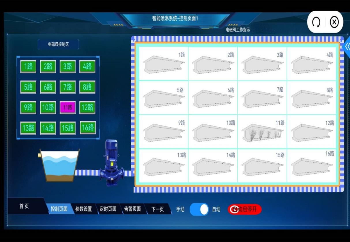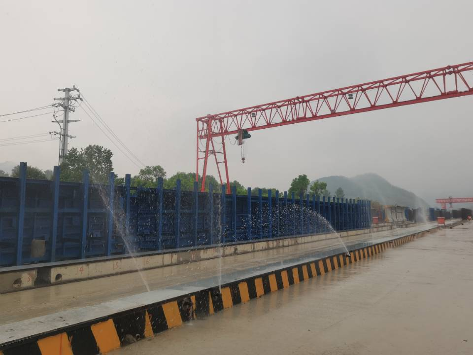 该系统在梁场建设时提前在台座中预埋喷淋管道,管道与自动供储水后台相连通。当T梁模板拆除后,可通过手机APP控制喷淋系统对T梁的腹板和翼板进行全面均匀喷洒,确保T梁养护无死角,同时通过手机应用控制养护操作,随时随地一键启动或关闭,必要时选择自动化模式,实现T梁24小时不间断养护。