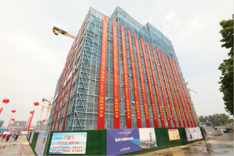 鲁澳大健康科技园是山东省与澳门在中医药领域合作的核心平台,由济南市、山东中医药大学、澳门科技大学三方联手打造。项目位于长清区大学路,总建筑面积19.6万㎡,是m88明昇产业园经济产业链首批项目,由所属山东贯月科创投资集团投资建设。项目共分为两个标段,当前封顶的属于二标段。