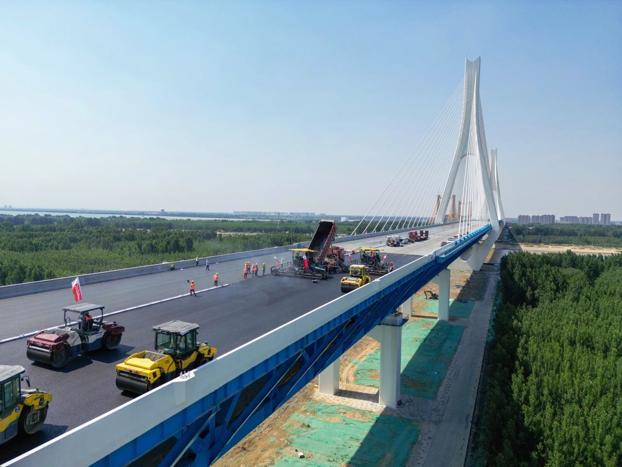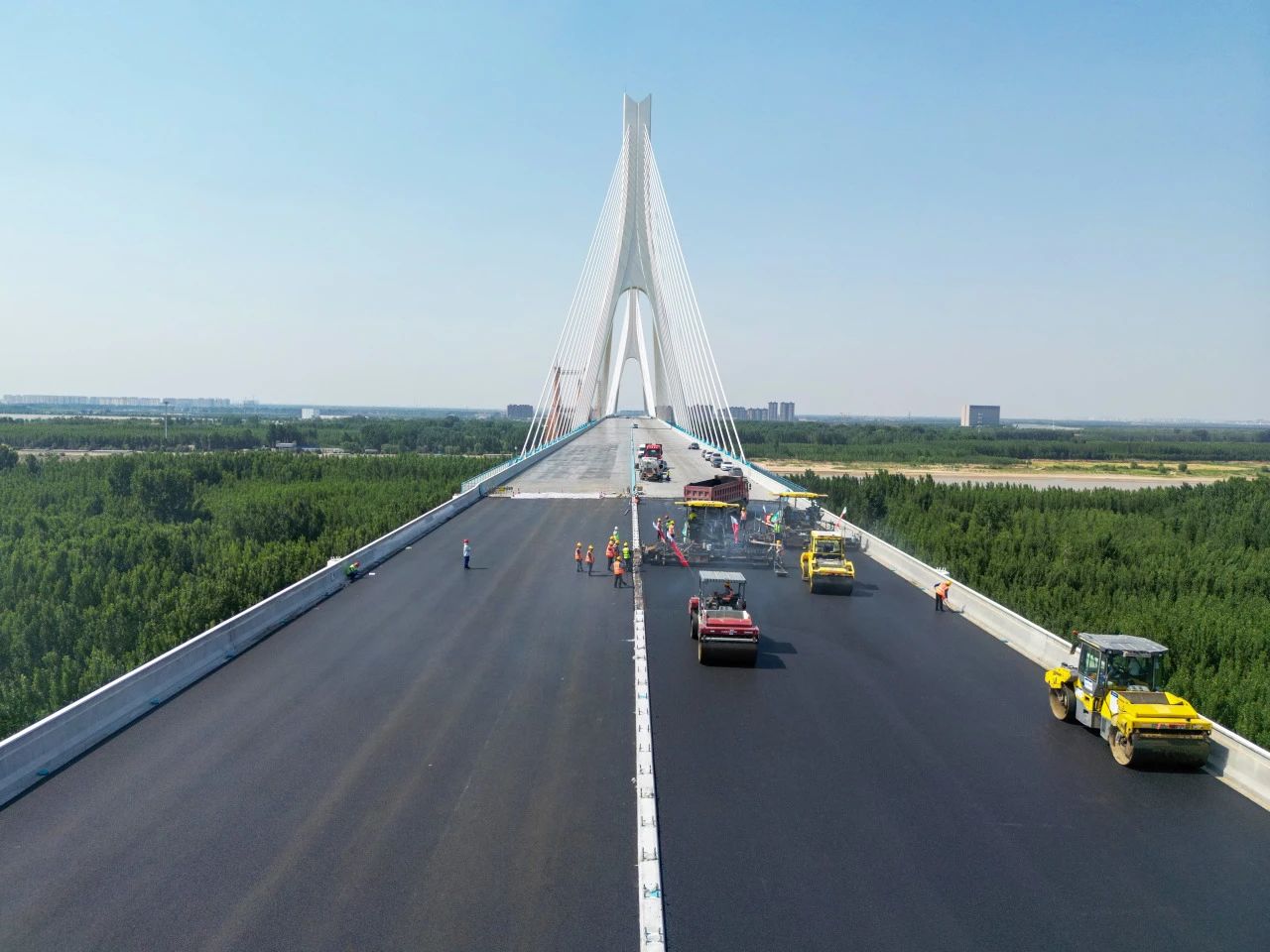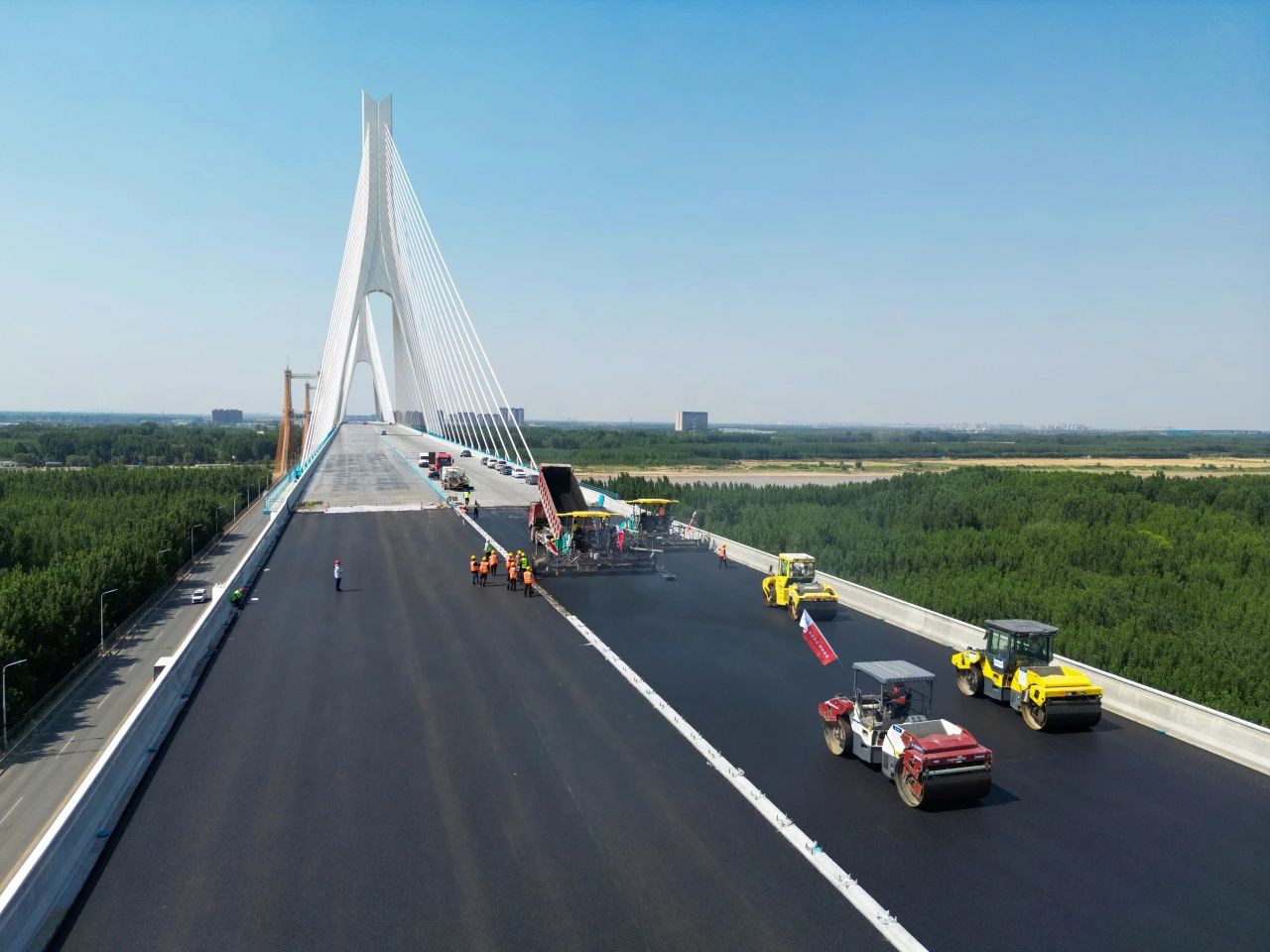 近日,由m88明昇承建的G104京岚线济南黄河公路大桥扩建工程的桥面沥青摊铺工作已全面展开。目前,大桥北岸桥面沥青铺设已经完成,南岸的摊铺工作也正在紧锣密鼓地进行中,标志着大桥距离正式通车又迈出了坚实的一步。